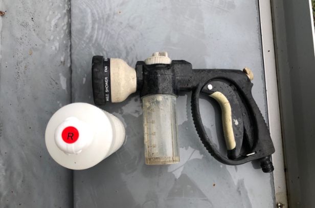 調査液をセットし、原因対象となりうる箇所に薬剤を混合噴射するための調査器具。
