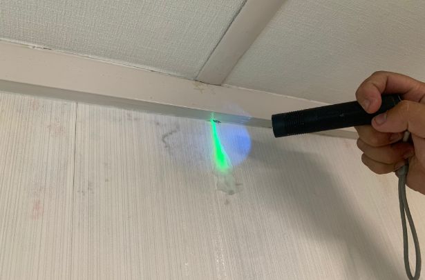 漏水箇所に紫外線を照射し、発光色を識別して雨漏りの原因を特定。