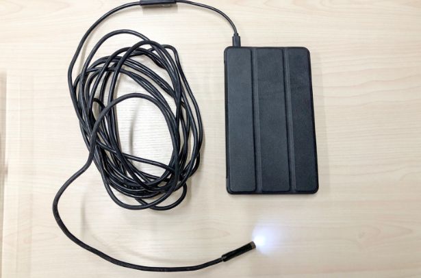 視認がむずかしい場所を撮影し、手元の液晶画面で確認できる超小型カメラ。